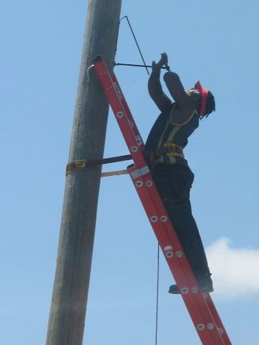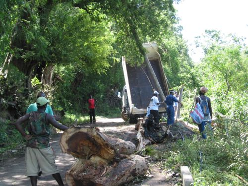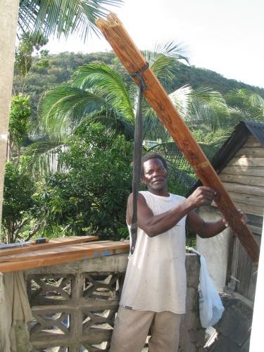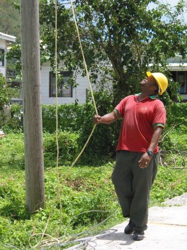 Men raising a pole on 'Sixteen Corners" using Carriacou ingenuity (and