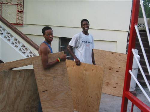 Robinsons prepare for Hurricane Ivan by securing their rented home